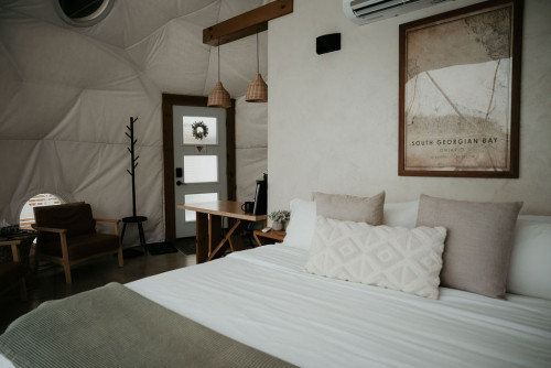 Back Forty Glamping, a luxury four season geodesic dome retreat, features seven 450 sq. ft domes on a 25-acre naturally wild property in Meaford, ON. Opened in 2022, a family run business, together they customized each dome to be fully equipped and temperature controlled. Back Forty Glamping is the perfect escape to experience luxury while reconnecting with nature, providing a superb backdrop to celebrate life's big moments, reconnect with a loved one, or indulge in uninterrupted self care.